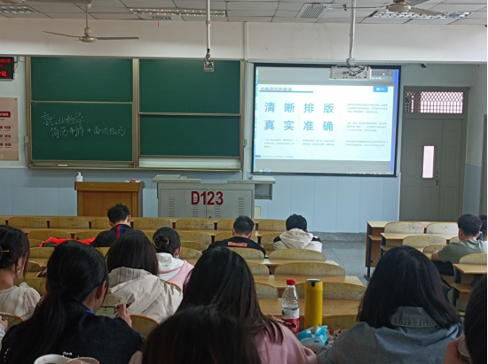 講座伊始,李經(jīng)理以“求職第一課”為題講解了在求職之前需要做的準備工作。李經(jīng)理以個人簡介聯(lián)想為例,引發(fā)同學(xué)們對于簡歷的思考。如何讓簡歷快速的吸引住HR的目光是進行求職的第一步。接著李經(jīng)理,以合格簡歷和不合格簡歷做對比,提出了一份合格的簡歷應(yīng)該滿足“簡歷五重奏”以及打造簡歷“六原則”的簡歷寫作方法。最后李經(jīng)理從面試前的準備、面試過程、面試結(jié)束后3個階段分別介紹了面試中需要注意的技巧。并提醒同學(xué)們,現(xiàn)在行業(yè)內(nèi)卷越來越嚴重,希望同學(xué)們主動出擊,積極擁抱秋招、春招,不要在坐等offer