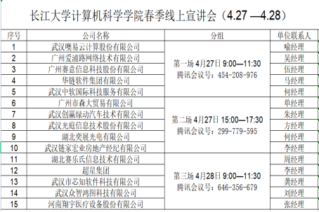 (通訊員 余珺瑞)為貫徹落實黨中央、國務(wù)院“穩(wěn)就業(yè)”、“保就業(yè)”決策部署,統(tǒng)籌做好高校畢業(yè)生就業(yè)工作,千方百計促進畢業(yè)生更加充分更高質(zhì)量就業(yè),解決困擾學(xué)生的就業(yè)難題,實現(xiàn)高校與企業(yè)的良性互動,計算機科學(xué)學(xué)院于2022年4月27日—4月28日舉辦了2022屆畢業(yè)生春季校園招聘會(計科類專場)活動,本次活動采用“線上雙選會”和“線上宣講會”同時進行的方式開展。
