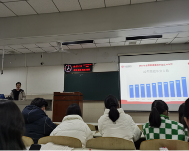 本次講座中,章老師首先向同學(xué)們解釋了行政編與事業(yè)編分別涵蓋的工作崗位類型及其區(qū)別,強(qiáng)調(diào)了疫情過(guò)后依然嚴(yán)峻的就業(yè)形勢(shì)。其緊扣現(xiàn)實(shí)問(wèn)題的開篇吸引了大家的注意力。緊接著,他向同學(xué)們依次詳細(xì)介紹了各個(gè)考試所需要的硬性報(bào)考條件及崗位缺口,展示了近三年的詳細(xì)錄取數(shù)據(jù),并多次向同學(xué)們強(qiáng)調(diào)應(yīng)屆生身份在選調(diào)生、公務(wù)員、事業(yè)編等考試中的重要性。