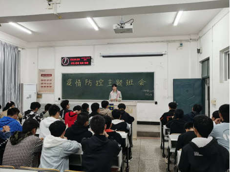 隨后,各學生班級召開了常態(tài)化疫情防控主題班會,印發(fā)常態(tài)化疫情防控宣傳材料,集體學習疫情防控知識,由安全員再次示范正確佩戴口罩等疫情防控技能,切實加強學生安全防范意識,提高疫情防控能力。