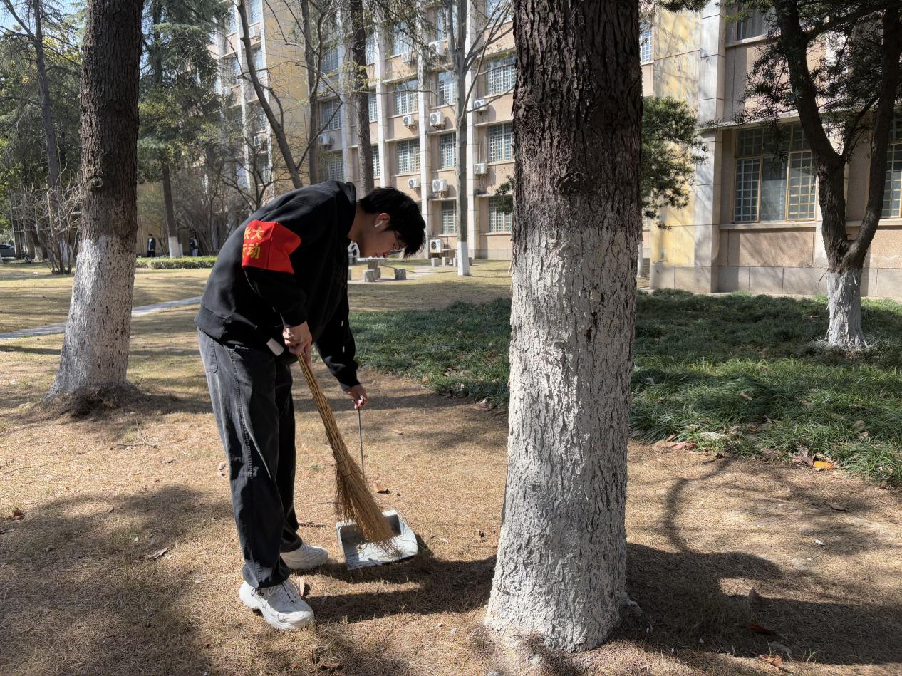 在學(xué)院負(fù)責(zé)老師的帶領(lǐng)下,同學(xué)們手持掃帚、垃圾夾等工具,對(duì)路面落葉、衛(wèi)生死角進(jìn)行集中清理。經(jīng)過一個(gè)小時(shí)的努力,校園環(huán)境煥然一新。