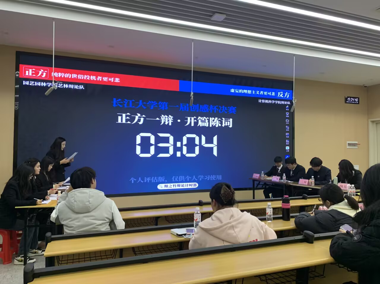 比賽現(xiàn)場(chǎng),我院辯論隊(duì)(反方)與園藝園林學(xué)院辯論隊(duì)(正方)圍繞“純粹的世俗投機(jī)者更可悲/虛妄的理想主義者更可悲”展開深度博弈,從“個(gè)體價(jià)值的異化”到“社會(huì)秩序的消解”,雙方攻防密集、火花四濺。