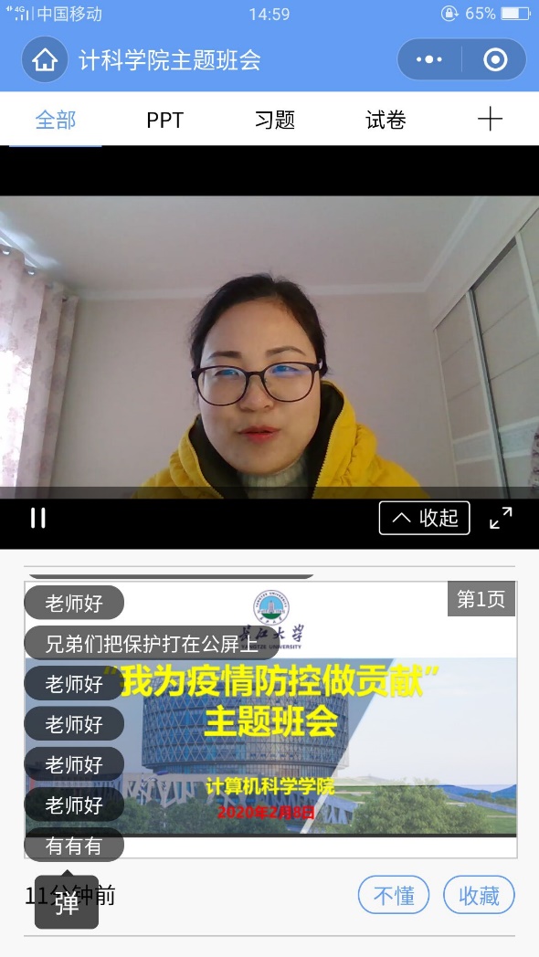 在新冠肺炎疫情防控期間,為落實學校防控指揮部的各項工作要求,確保每一名學生不因疫情影響學業(yè),2月8日下午15:00,學院利用“雨課堂”召開了全院學生大會,學院黨委副書記顏學俊、全體輔導員、部分班主任、2000余名研究生、本科生參加大會。大會由院團委書記蘇玉容主講。