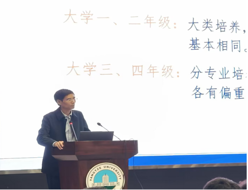 會議開始,學(xué)院副院長陳中舉老師向新生們介紹了學(xué)院的專業(yè)設(shè)置、專業(yè)學(xué)習(xí)以及學(xué)院“一生一賽”培養(yǎng)規(guī)劃。他深入淺出地講解了各個專業(yè)的特色與優(yōu)勢,為新生們指明了大學(xué)四年的學(xué)習(xí)方向,同時強調(diào)通過參加學(xué)科競賽提升實踐能力的重要性。