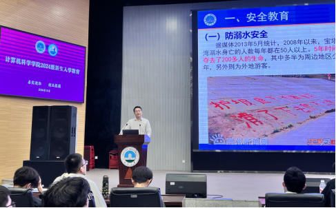 學(xué)院黨委副書記肖彬老師為新生開展安全教育。內(nèi)容涵蓋防溺水、消防、交通、防詐騙、正確認識宗教和文明上網(wǎng)等與大學(xué)生息息相關(guān)的各項安全知識。他通過生動的案例和詳細的講解,向新生們傳授了安全知識和防范技巧,增強了新生的自我保護意識。
