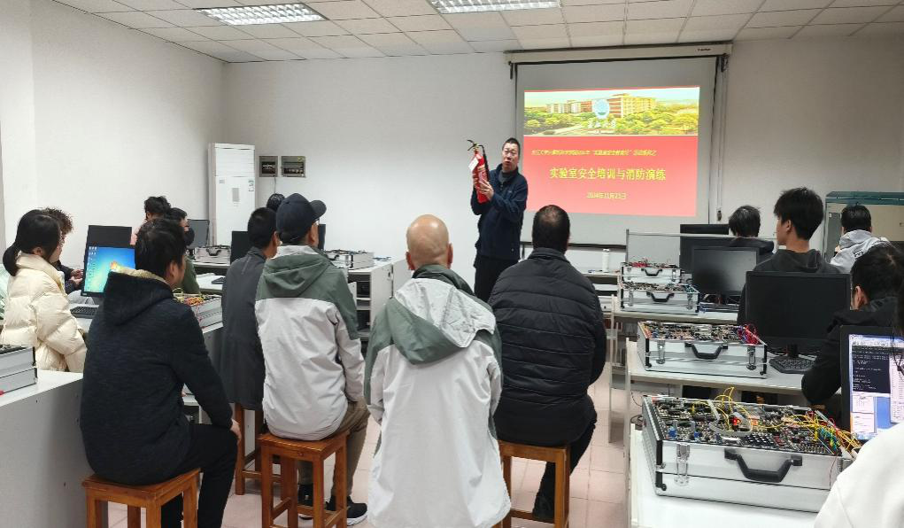 3.組織了學院實驗室安全培訓。王劍主任給參與培訓的老師和學生介紹了相關(guān)的實驗室安全知識,并詳細講解了二氧化碳滅火器的使用方法。