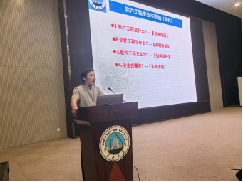 隨后,王同喜老師圍繞軟件工程是什么?學(xué)什么?怎么學(xué)?畢業(yè)去哪里?四個問題,從宏觀層面為同學(xué)們詳細解讀軟件工程專業(yè)的定位、知識體系與學(xué)習(xí)要點、學(xué)習(xí)方法和職業(yè)規(guī)劃,仿佛為同學(xué)們繪制了一幅清晰的專業(yè)地圖。向華老師則化身“競賽引路人”,詳細介紹各類計算機與軟件競賽的情況,包括ACM、藍橋杯等知名賽事,并簡單介紹了參加這些競賽的可操作路徑,鼓勵同學(xué)們在競賽的舞臺上磨礪專業(yè)能力。李夢霞老師從學(xué)風(fēng)建設(shè)出發(fā),語重心長地闡述學(xué)習(xí)習(xí)慣與方法的重要性,激勵同學(xué)們以踏實的態(tài)度鉆研專業(yè)技能。陳應(yīng)霞老師提出軟件工程專業(yè)育人宗旨:“以學(xué)生發(fā)展為中心,以提高培養(yǎng)質(zhì)量為導(dǎo)向,以培養(yǎng)優(yōu)秀人才為目標(biāo)“。另外,陳應(yīng)霞老師還詳細介紹了本科導(dǎo)師制,要求還沒有選定導(dǎo)師的同學(xué)盡快選好導(dǎo)師,確保每位同學(xué)都能得到幫扶和指導(dǎo)。