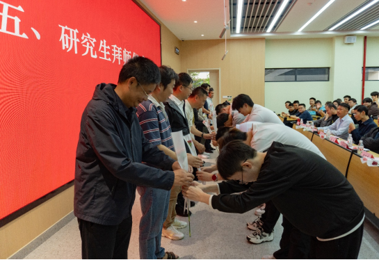 典禮現(xiàn)場(chǎng)最受矚目的環(huán)節(jié),當(dāng)屬莊重的拜師儀式。2025級(jí)研究生依次向各自的導(dǎo)師深深鞠躬,并獻(xiàn)上代表感恩與敬意的鮮花。這一“躬”,承載著對(duì)學(xué)術(shù)傳統(tǒng)的敬畏;這一“獻(xiàn)”,傳遞著對(duì)知識(shí)傳承的承諾。簡(jiǎn)短而隆重的儀式,不僅讓“尊師重道”的優(yōu)良傳統(tǒng)在現(xiàn)場(chǎng)落地生根,更標(biāo)志著全體新生研究生涯的正式開啟。