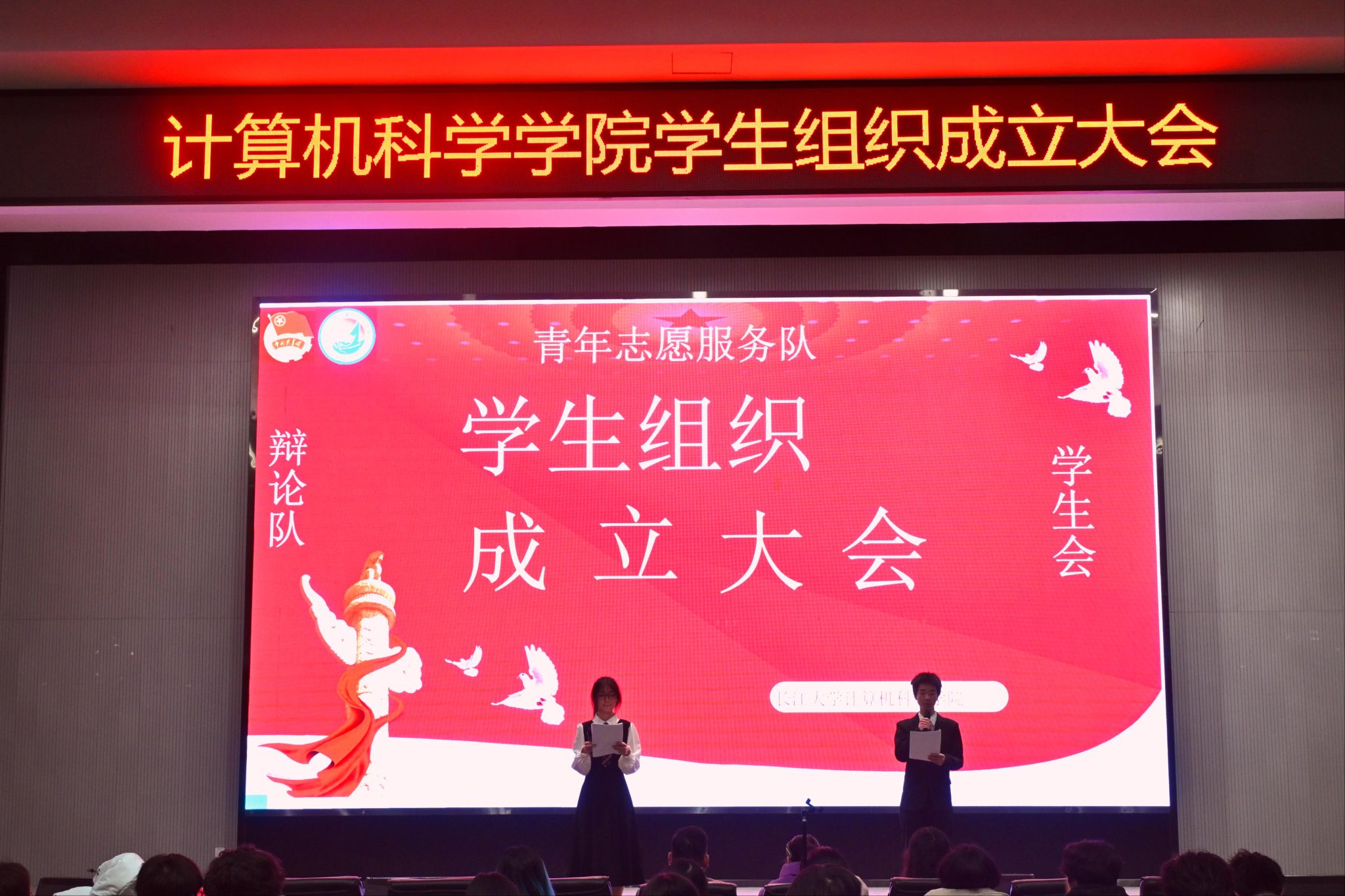 2025年12月19日晚,計算機科學學院2025屆學生組織成立大會在西校區(qū)農(nóng)科大樓1058報告廳順利舉行。學院分團委書記張茜、輔導員郭帥和艾思含參加了本次成立大會。