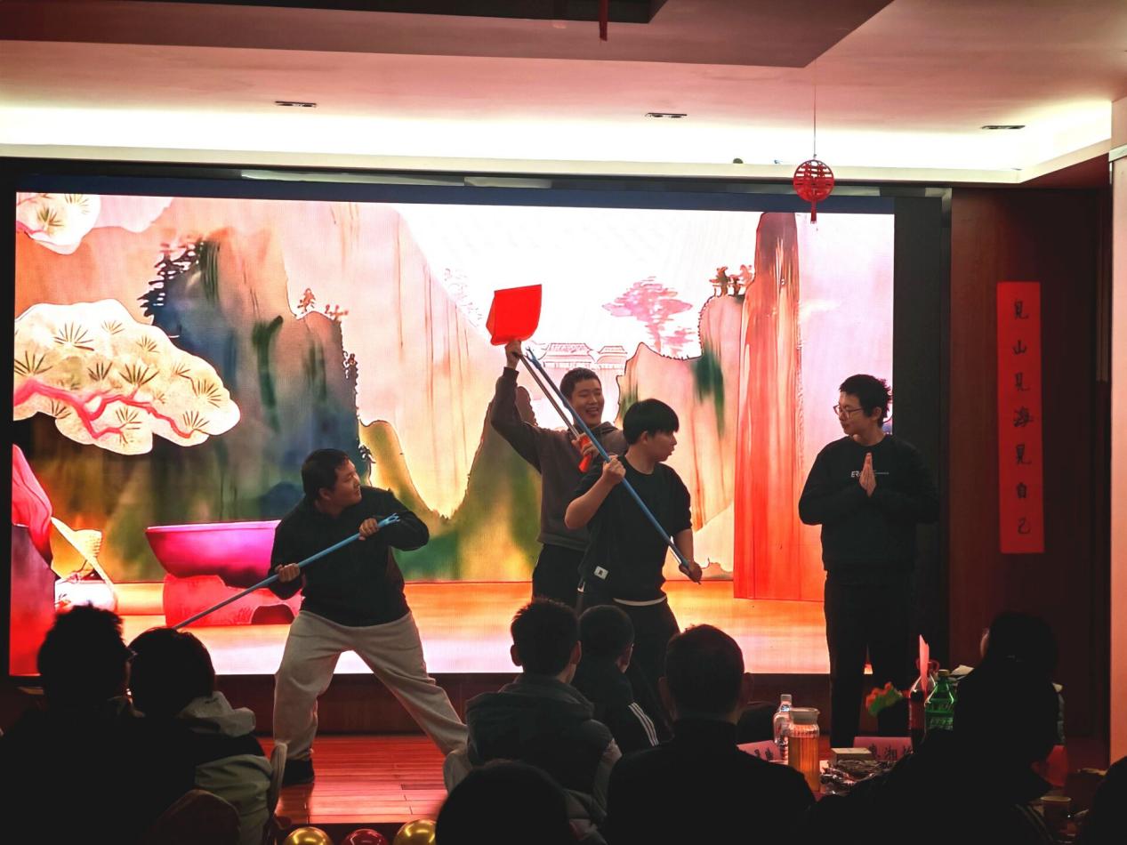 晚會(huì)伊始,全體同學(xué)2025年珍貴照片凝聚的溫情視頻率先登場(chǎng)。視頻里定格了同學(xué)們并肩學(xué)習(xí)、攜手活動(dòng)的難忘瞬間,不僅系統(tǒng)回顧了過(guò)去一年的成長(zhǎng)點(diǎn)滴,更飽含著大家對(duì)2026年學(xué)業(yè)精進(jìn)、不負(fù)學(xué)院期許的堅(jiān)定展望。女生舞蹈《失戀陣線聯(lián)盟》活力四射,輕快舞步瞬間點(diǎn)燃全場(chǎng)熱情;全體輔導(dǎo)員合唱《一路生花》溫柔治愈,歌聲里滿含師長(zhǎng)對(duì)學(xué)子的殷切期許;相聲《我的傳奇爺爺》包袱密集,逗趣表演讓現(xiàn)場(chǎng)笑聲不斷;歌曲《老男孩》旋律婉轉(zhuǎn),深情訴說(shuō)著青春感悟與時(shí)光感慨;黨委副書(shū)記艾林演繹的《十年》韻味悠長(zhǎng),道盡時(shí)光里的沉淀與感悟;獨(dú)舞《ZOO》風(fēng)格鮮明,利落動(dòng)作展現(xiàn)出獨(dú)有的舞臺(tái)張力;院長(zhǎng)助理雷鳴帶來(lái)的歌曲《夏日傾情》溫柔繾綣,歌聲里滿是浪漫情懷;舞臺(tái)劇《八十一難》創(chuàng)意十足,以經(jīng)典改編演繹別樣故事;小品《爽子的日常》貼近校園,幽默橋段引發(fā)全場(chǎng)會(huì)心一笑;舞臺(tái)劇《學(xué)生的名義》聚焦校園實(shí)景,詼諧演繹直擊人心;合唱《平凡之路》鏗鏘有力,唱響青春的迷茫與堅(jiān)定;艾思含老師帶來(lái)的歌曲《后會(huì)無(wú)期》深情婉轉(zhuǎn),勾起歲月里的難忘情愫;合唱《恭喜發(fā)財(cái)》熱鬧喜慶,滿溢著濃濃的新年氛圍!