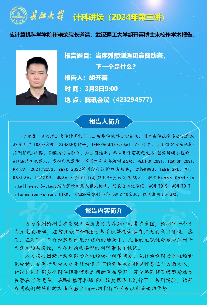 計(jì)科講壇(2024年第三講):當(dāng)序列預(yù)測(cè)遇見(jiàn)意圖動(dòng)態(tài),下一個(gè)是什么?