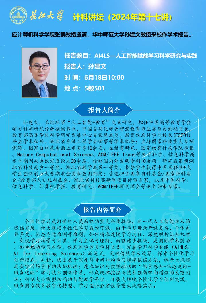 計科講壇(2024年第十七講):AI4LS—人工智能賦能學(xué)習(xí)科學(xué)研究與實踐