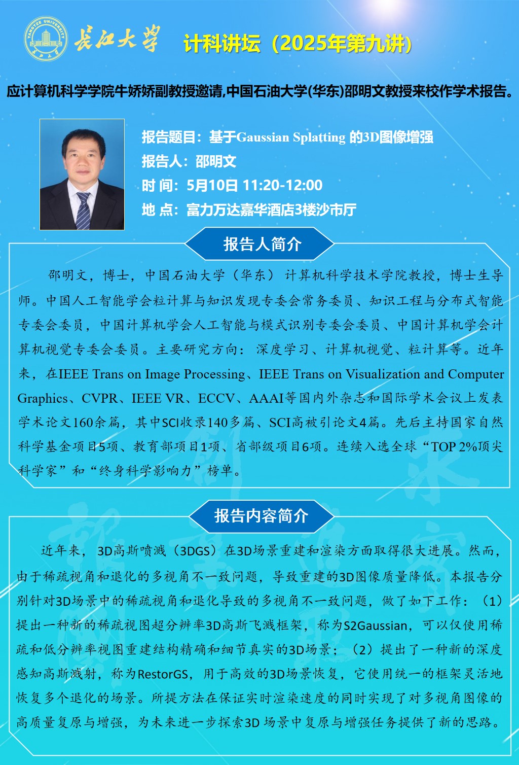 計科講壇(2025年第九講):基于Gaussian Splatting 的3D圖像增強(qiáng)