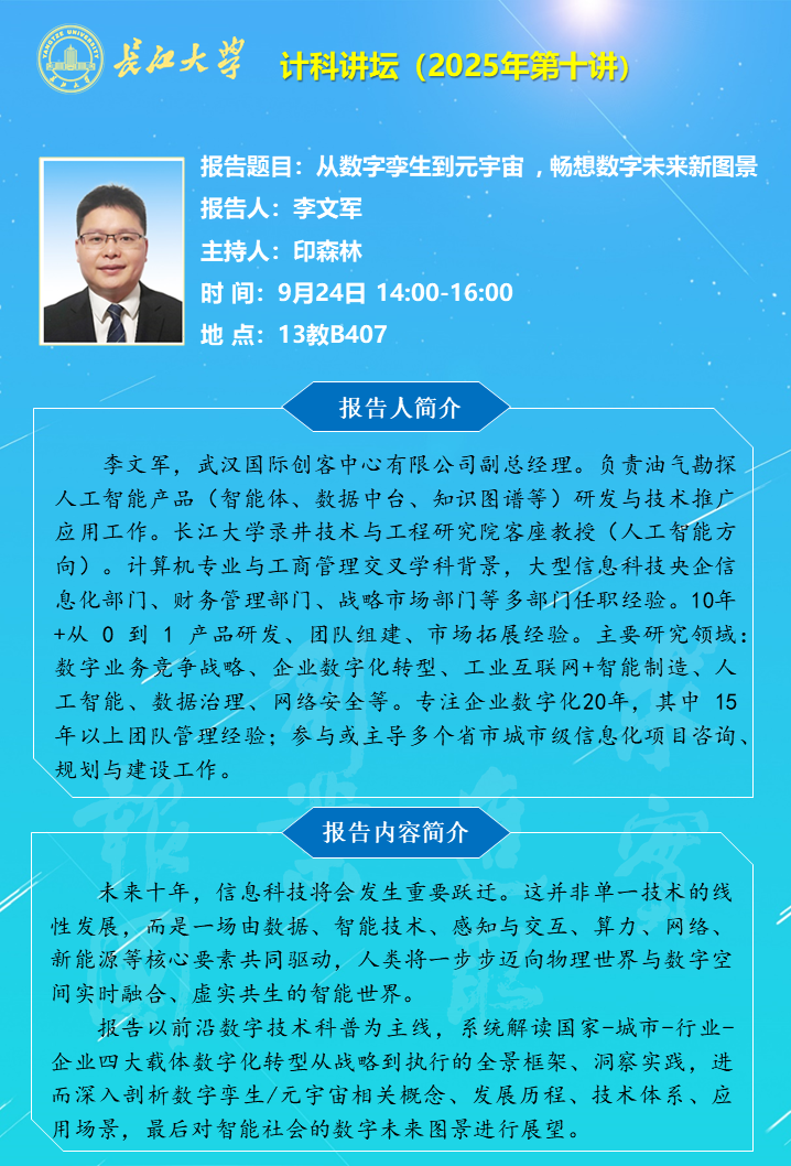 計(jì)科講壇(2025年第十講):從數(shù)字孿生到元宇宙 , 暢想數(shù)字未來(lái)新圖景