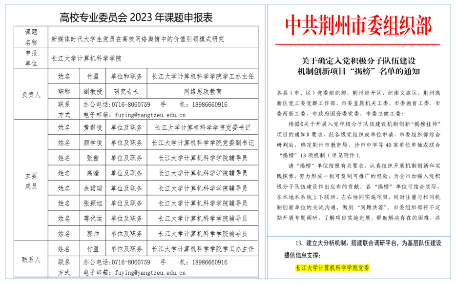加強(qiáng)問題導(dǎo)向,組織課題調(diào)研。學(xué)院黨委注重把主題教育與做好思想政治工作緊密結(jié)合起來。一是《新媒體時(shí)代大學(xué)生黨員在高校網(wǎng)絡(luò)輿情中的價(jià)值引領(lǐng)模式研究》,旨在建立學(xué)生黨員的宣傳、教育、培養(yǎng)模式,建立健全學(xué)生黨員輿情干預(yù)體系,充分發(fā)揮高校學(xué)生黨員的引領(lǐng)、輻射和示范作用。二是《建立大分析機(jī)制、搭建聯(lián)合調(diào)研平臺(tái),為基層隊(duì)伍建設(shè)提供信息支撐》,旨在構(gòu)建“入黨介紹人-支部書記-黨委書記”聯(lián)合調(diào)研分析機(jī)制,積極探索智慧黨建新模式。三是《新時(shí)代高校基層黨組織統(tǒng)戰(zhàn)工作機(jī)制實(shí)踐研究》,旨在完善基層黨組織“大統(tǒng)戰(zhàn)”工作格局。