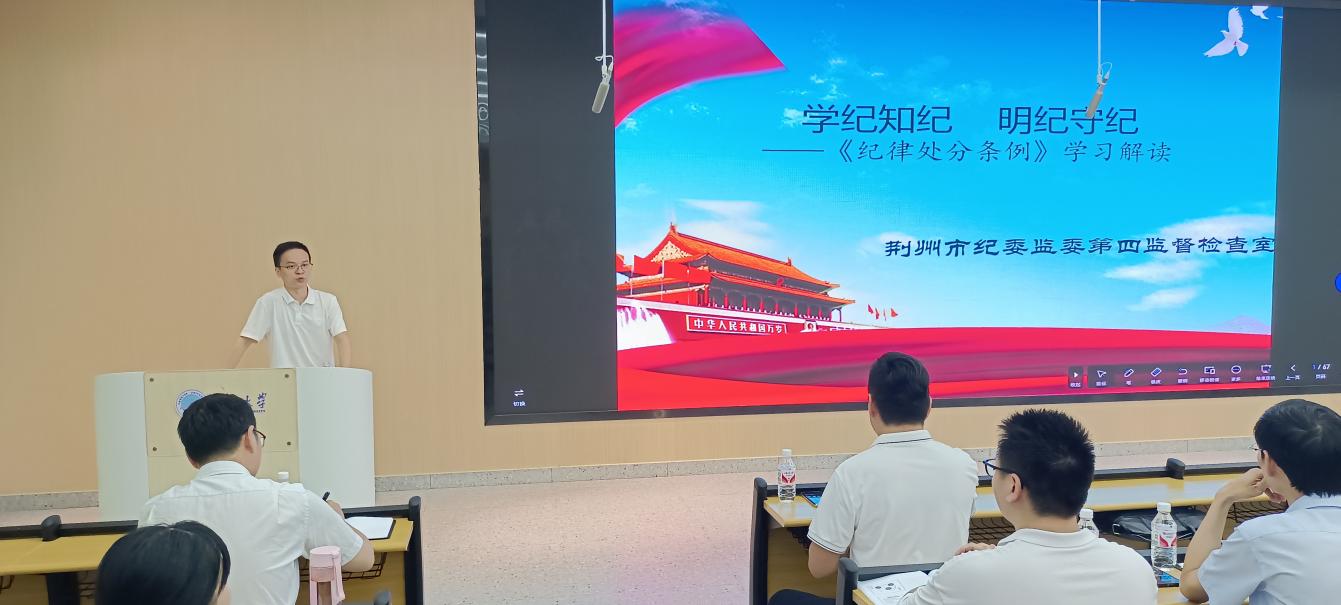 為進(jìn)一步推進(jìn)全院黨紀(jì)學(xué)習(xí)教育見(jiàn)行見(jiàn)效、入腦入心,引導(dǎo)全院黨員深刻理解把握新修訂的《中國(guó)共產(chǎn)黨紀(jì)律處分條例》(以下簡(jiǎn)稱《條例》)主要內(nèi)容,6月13日晚,荊州市紀(jì)委監(jiān)委第四監(jiān)督檢查室主任胡輝應(yīng)邀到計(jì)科學(xué)院作輔導(dǎo)報(bào)告。報(bào)告會(huì)由計(jì)科學(xué)院黨委書(shū)記鄭健主持,學(xué)院全體師生黨員參加學(xué)習(xí)。
