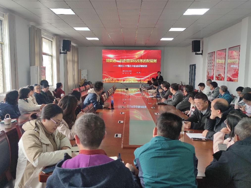 會議第三階段,全院教職工共同觀看中央黨校(國家行政學(xué)院)研究室沈傳亮主任的視頻專題講座——《深入學(xué)習(xí)貫徹習(xí)近平總書記關(guān)于全面深化改革的一系列新思想、新觀點、新論斷和黨的二十屆三中全會精神》。