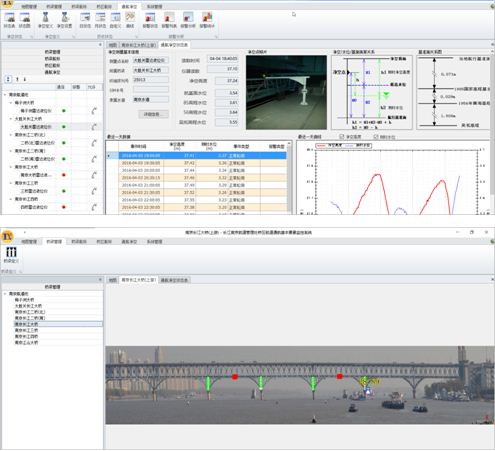 ② 直觀形象的橋梁凈空/水位監(jiān)控界面,全面實(shí)時(shí)地反反映了儀表讀數(shù)、橋梁凈空、四種水位數(shù)據(jù);